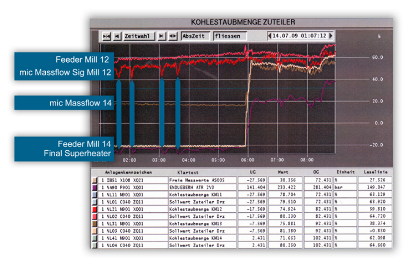 对于燃煤电站,MIC提供多种测量和调整粉煤质量流量的方法。我们最全面的解决方案包括在线测量锅炉所有煤管的质量流量,同时通过阀门保持煤流量平衡,采用反馈控制的自动系统。